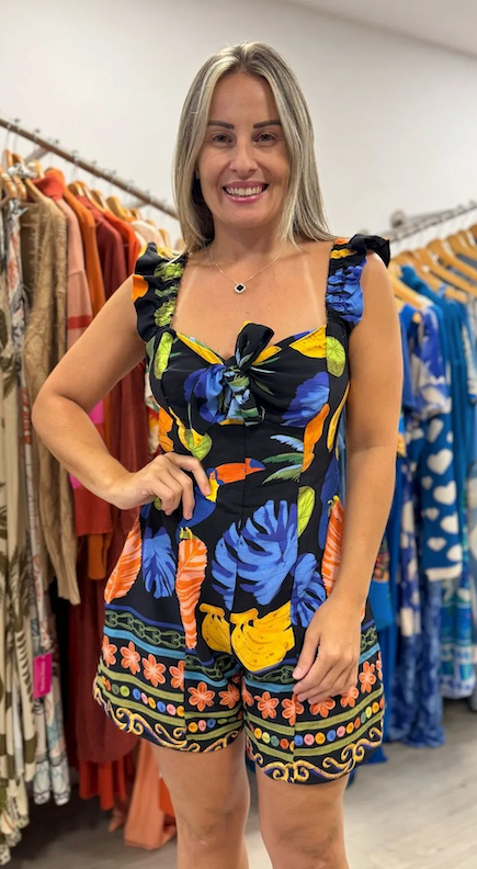 Ideal para os dias mais quentes, passeios ou eventos descontraídos, o Macaquinho Letícia é a tradução do estilo confortável, prático e elegante que toda mulher moderna adora.